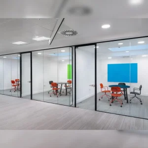 Diseñamos puertas correderas plegables para interiores y exteriores de espacios corporativos.