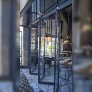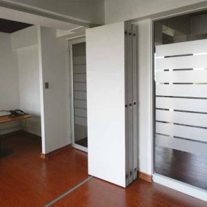 Diseñamos puertas correderas plegables para interiores y exteriores de espacios corporativos.