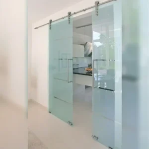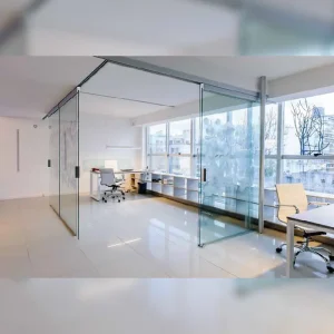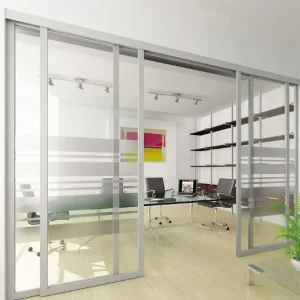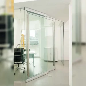 Puerta corrediza doble en vidrio para oficina